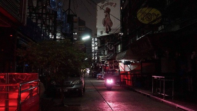 Pim, uma transexual de 32 anos, vagueia por um dos bairros de Bangkok conhecidos pela indústria do sexo. Os grupos de turistas sexuais que normalmente passeiam por essa área desapareceram e os bares, discotecas, karaokês e “massagens” estão fechados.
