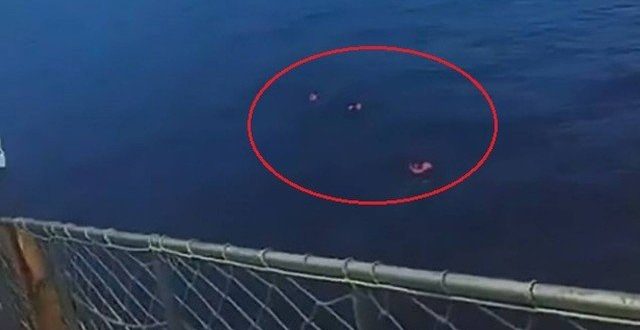Imagens dos cinco passageiros, que usavam colete salva-vida, foram feitas por outros passageiros que permaneceram na tensa embarcação. O incidente ocorreu nesta semana.