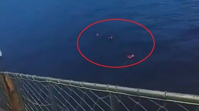 Imagens dos cinco passageiros, que usavam colete salva-vida, foram feitas por outros passageiros que permaneceram na tensa embarcação. O incidente ocorreu nesta semana.