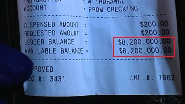“Fui sacar US$ 200 e olhei para o saldo da minha conta”, contou Charles Calvin à emissora WGN, achando inicialmente que tinha visto errado. Não tinha.