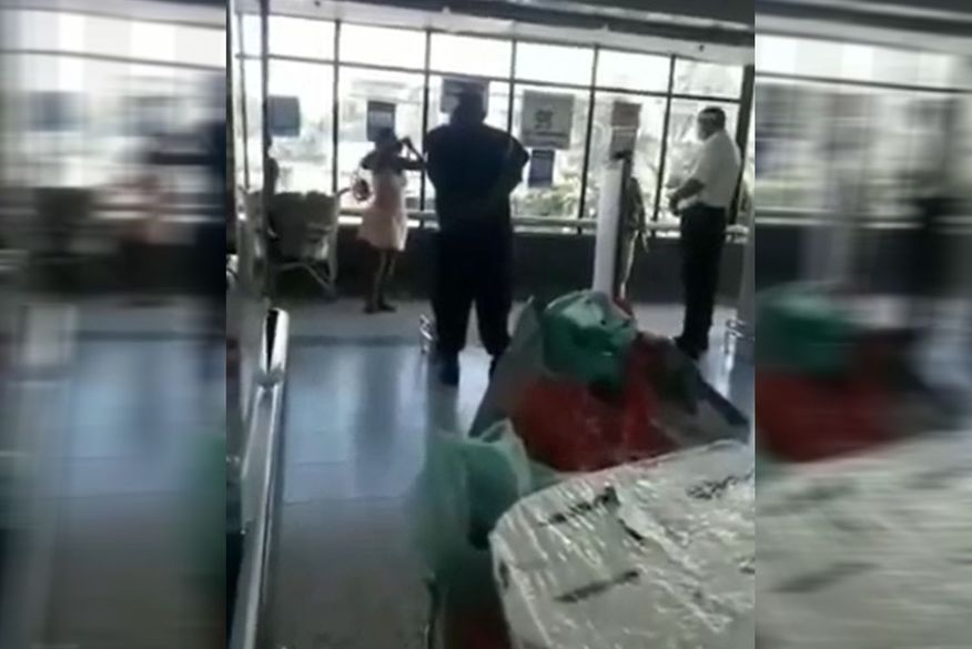 Nas imagens, é possível ver que a mulher é parada pelos seguranças impedindo a sua entrada no estabelecimento. Em seguida, dá pra ver a movimentação dela, retirando a roupa de baixo do vestido e colocando em seu rosto.