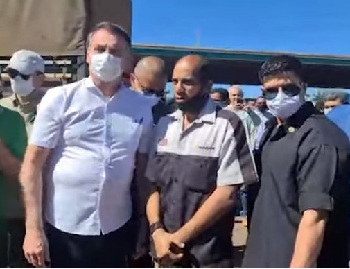 Aglomerações se formaram ao redor do presidente, ao contrário do que recomendam as autoridades sanitárias para evitar o alastramento do coronavírus. Mas maioria estavam usando mascaras para se proteger.