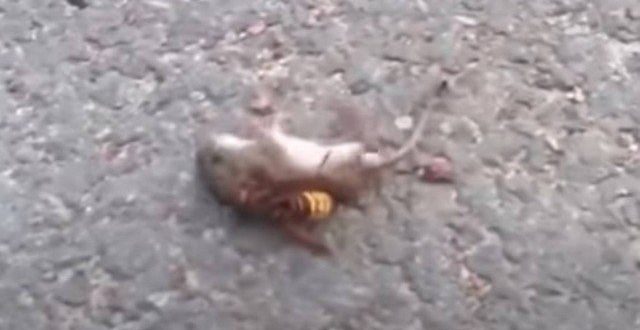 Nas imagens, a vespa gigante, de origem asiática, mata um rato em menos de um minuto. Detalhe: o roedor tem três vezes o tamanho do inseto.