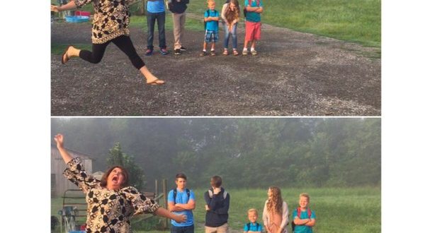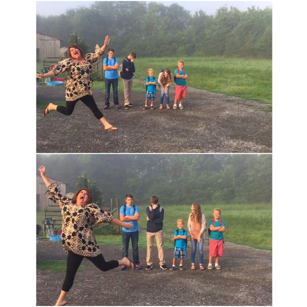 A norte-americana vive no Alabama, nos Estados Unidos, e viralizou na internet após publicar duas fotos em que aparece pulando de felicidade pelo fim das férias escolares de seus cinco filhos.