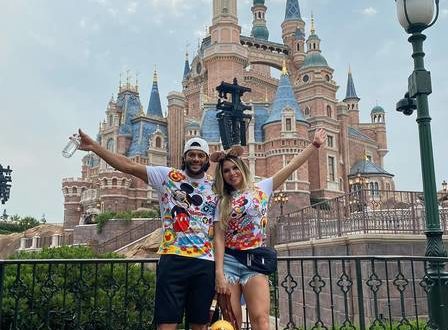 E foi num desses que o jogador Hulk decidiu passar o fim de semana com a namorada, Camila Ângelo: os dois se divertiram na Disney, em Xangai, onde os dois vivem.