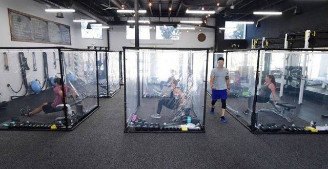 Home / MUNDO / Academia americana reabre com clientes isolados em cápsulas transparentes