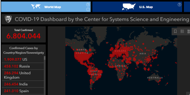 O mapa mundial da luta contra o coronavirus mostra 6.111.910 pessoas que se curaram da doença no mundo. O Brasil em primeiro lugar entre o total de recuperados.