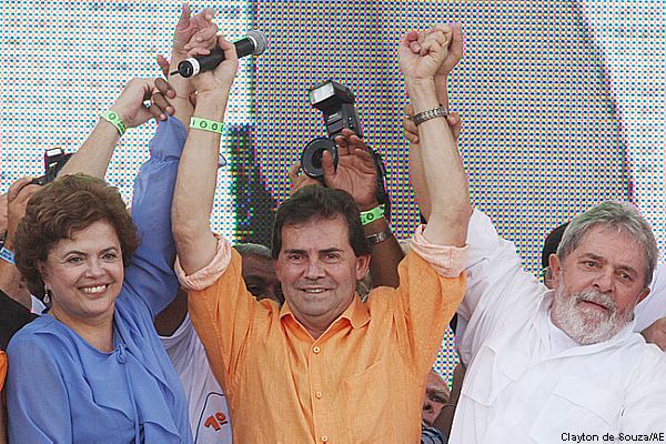 CLULA10 SÃO PAULO SP 01/05/2010 LULA 1 DE MAIO NACIONAL Dilma , Paulinho , e o presidente Lula durante a festa em comemoração ao primeiro de Maio da Força Sindical , na zona Norte. FOTO: Clayton de Souza/AE