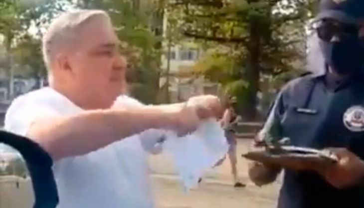 “Você quer que eu jogue na sua cara? Faz aí, que eu amasso e jogo na sua cara”, diz o desembargador ao ser abordado sem máscara, se referindo à multa por não usar o acessório.