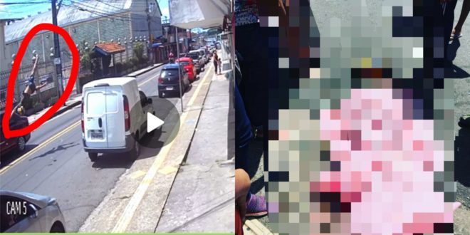 Um vídeo disponibilizado por um comerciante do local, monstra o momento do acidente.