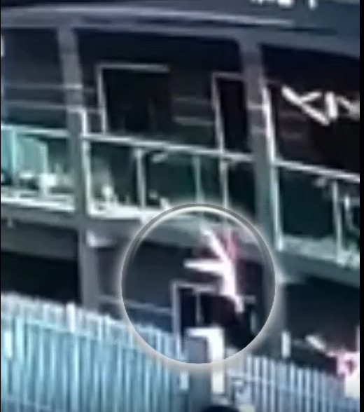 Um video mostra uma criança de 2 anos sendo salva por um vizinho ao cair da sacada do terceiro andar de um prédio.