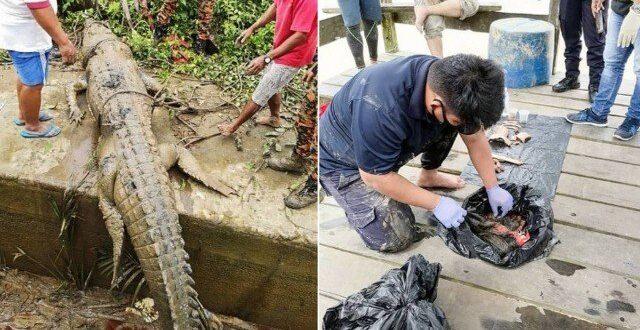 Os restos mortais de um adolescente foram achados no estômago de um crocodilo de 4,3 metros de comprimento capturado em um rio em Kuching (Malásia).