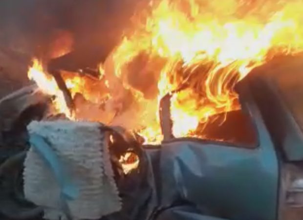 Segundo a Polícia Militar (PM) local, houve uma colisão frontal entre os dois veículos que estavam na estrada, um deles pegou fogo.
