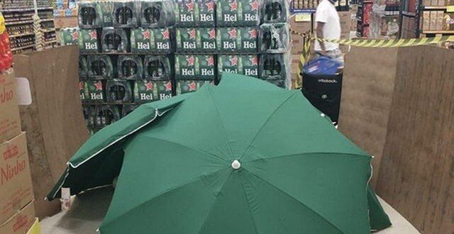 Um funcionário de supermercado em Recife morreu enquanto trabalhava, na manhã da sexta-feira, dia 14, e foi coberto por guarda-sóis para que o estabelecimento continuasse em funcionamento.