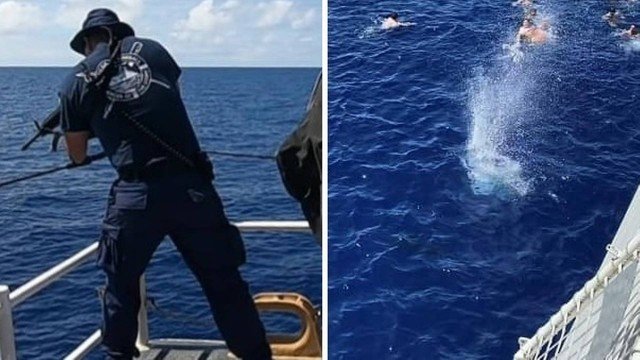 “Estão todos bem, incluindo o tubarão”, disse o comando do navio da Guarda Costeira.