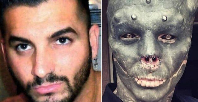 Em seguida, tatuou os globos oculares e os lábios e teve a língua bifurcada. O amante de modificação corporal não estava ainda satisfeito com o resultado e resolveu aderir a procedimentos extremos.
