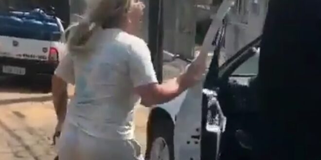 “Eu vou dar na tua cara “ordinária”, sai daqui demônio. Tá fazendo o quê aqui?”, diz a ciumenta aos gritos.