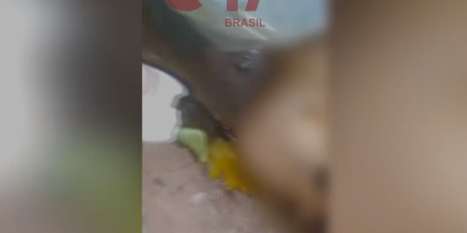 Nas imagens é possível ver que o pai ordena:  “Vai chupar isso aí”, enquanto o menino chora e se abaixa para colocar a boca no chão. Em seguida, o adulto insiste: “Chupa, chupa”.