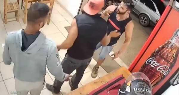 Nas imagens registradas por câmeras de segurança, Jackie chega ao estabelecimento, vestindo uma regata preta com detalhe vermelho, tirando satisfação com o trabalhador. Depois, ele parte para cima do motoboy, de moletom cinza, que revida as agressões e derruba o homem no chão. A pessoa de boné vermelho não foi identificada.