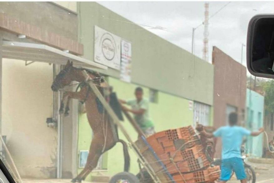 O caso ocorreu na manhã desta terça-feira (27), foi fotografado e denunciado à polícia ambiental. Uma equipe do Batalhão de Polícia do Meio Ambiente de Juazeiro do Norte constatou que o animal transportava uma carga pesada de tijolos.