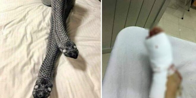 De acordo com a mulher, de descendência paquistanesa, a fatalidade aconteceu quando o marido entrou no quarto e viu os pés da esposa por baixo dos lençóis. Extremamente assustado ao pensar que se tratava de uma cobra de verdade, o homem usou um taco de madeira para ‘matar’ o suposto animal mas acabou quebrando as pernas da própria esposa.