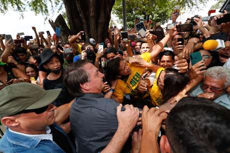 Em chegada à Imperatriz (MA), o presidente Jair Bolsonaro (sem partido) provoca aglomeração de pessoas. — Foto: Reprodução/Redes sociais