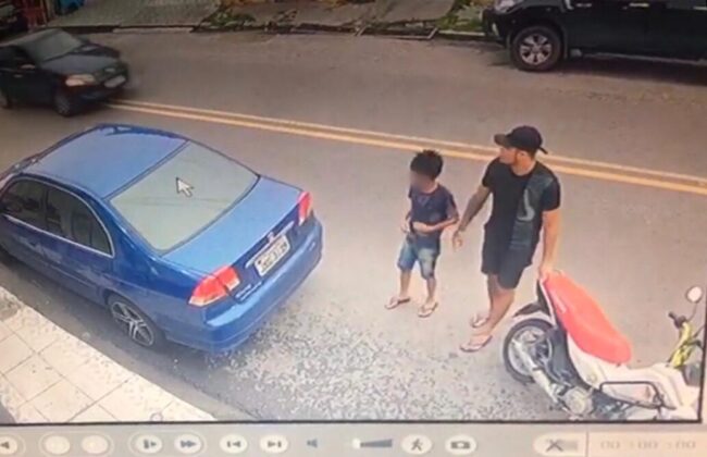 No vídeo é possível acompanhar os suspeitos em uma motocicleta tomando os pertences de pessoas e comerciantes do local.