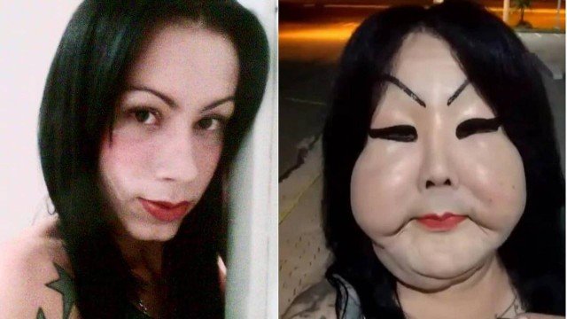 A gaúcha, de 30 anos, e que trabalha na rua fazendo programas, realizou o procedimento no rosto em 2017 numa clínica clandestina e pagou para colocar 250 ml de silicone industrial, que foram espalhados por bochecha, nariz, queixo e maxilar.
