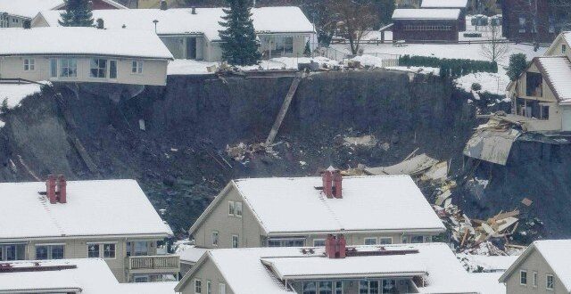 Casas foram destruídas e uma cratera foi formada após deslizamento de terra na cidade de Gjerdrum, na Noruega