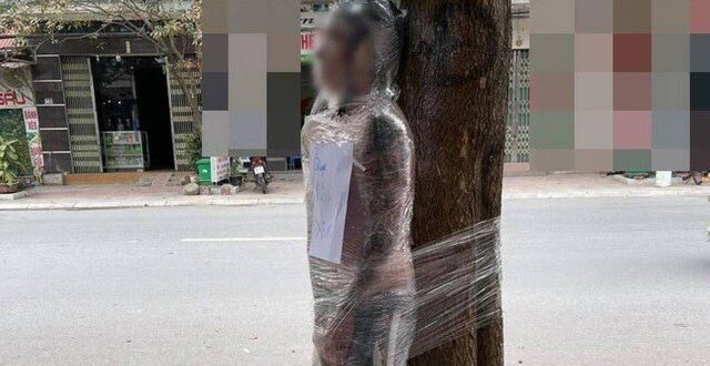 Um jovem foi amarrado com filme plástico a uma árvore em Hanói (Vietnã) após, segundo postagens que recentemente viralizaram nas redes sociais do país asiático, não pagar por uma tatuagem feita em um estúdio identificado como NQT, na capital vietnamita.