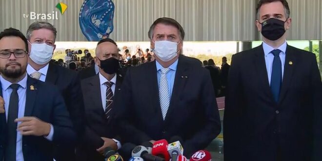 O presidente do Senado, Rodrigo Pacheco (DEM-MG), afirmou que a reunião desta quarta-feira (24) foi sintetizada com a criação de um “pacto nacional” liderado pelo presidente Bolsonaro.
