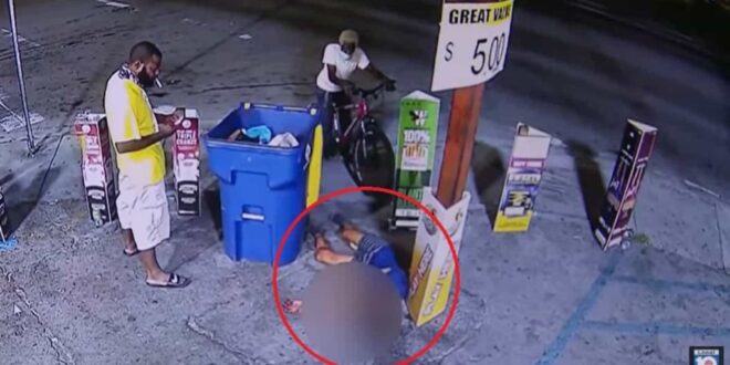 Um menino de 12 anos foi filmado tendo um desmaio ao pedir ajuda em frente a uma mercearia em Miami, nos EUA.