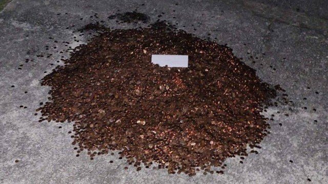“Se eu fiz as contas corretamente, são 91.500 moedas de 1 centavo, que devem chegar ao peso de cerca de 504 libras (228 quilos)”, disse o americano à Fox 13 News.
