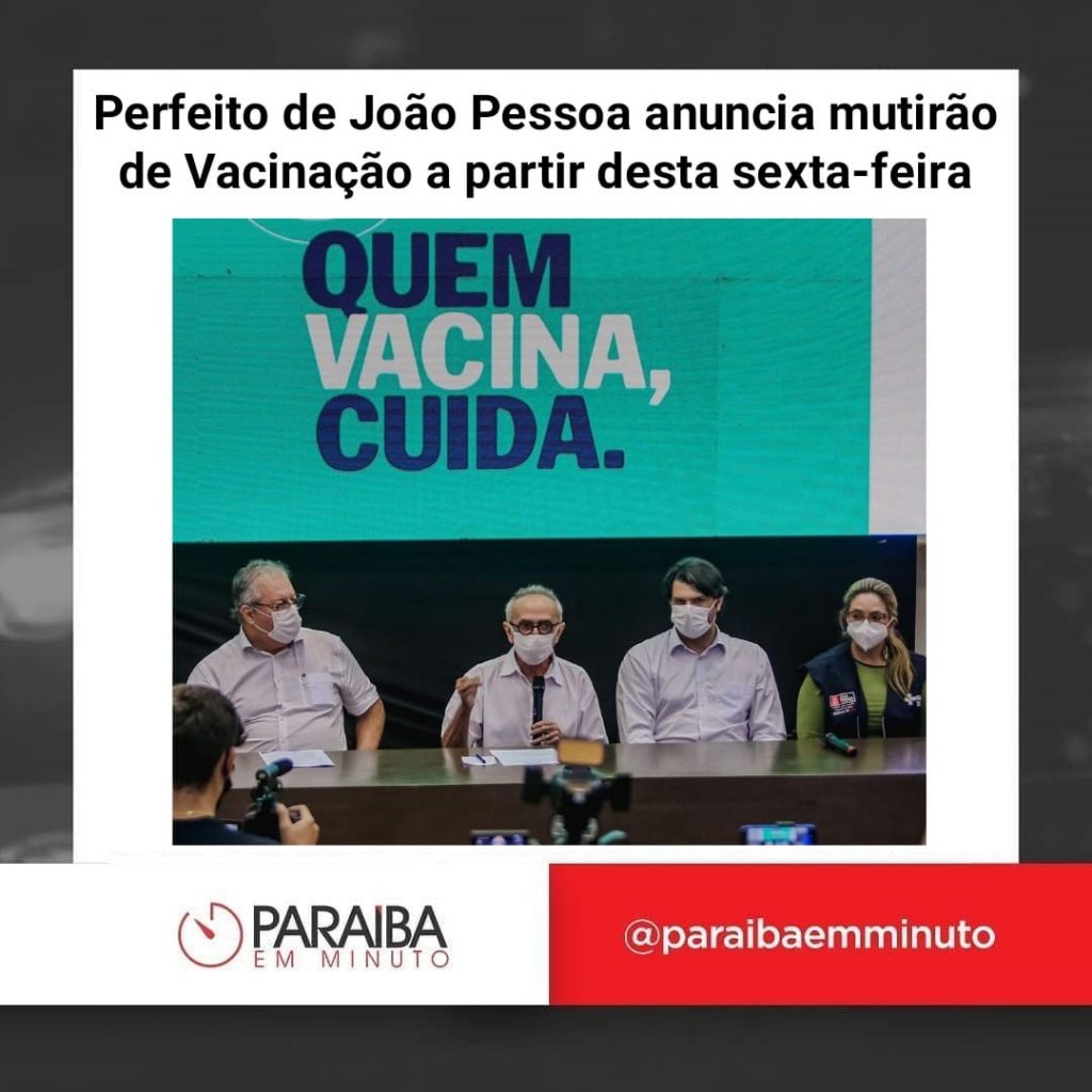 Nesta quinta-feira, dia 15, o prefeito de João Pessoa Cícero Lucena declarou que a gestão realizará um mutirão de aplicação das vacinas contra a covid-19 na capital.