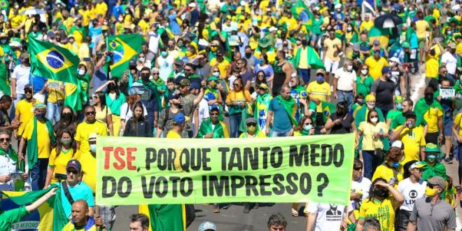 Além disso, são propagadas mensagens contra as urnas eletrônicas, pedindo a auditoria das eleições, a partir do voto impresso. “Urna eletrônica com contagem secreta dos votos é fraude”, diz uma das faixas levantadas pelos manifestantes.