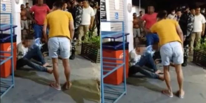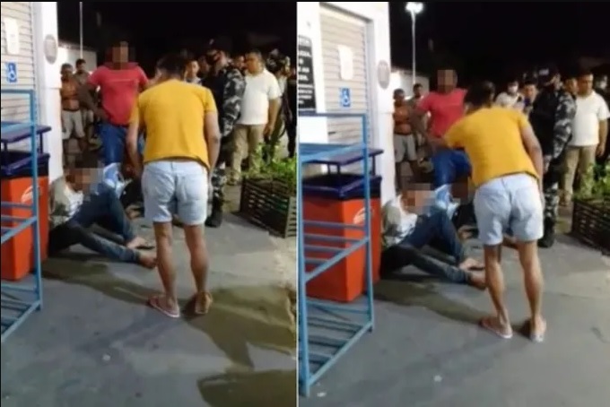 No vídeo gravado por testemunhas, mostra o momento que uma mãe chega no local e ver seu filho sendo algemado no chão de um posto de combustíveis.