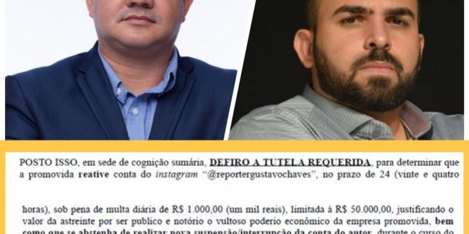 A juíza determinou, por fim, que o Facebook reative a conta no Instagram do repórter Gustavo Chaves “no prazo de 24 (vinte e quatro horas), sob pena de multa diária de R$ 1.000,00 (um mil reais), limitada à R$ 50.000,00, justificando o valor da astreinte por ser publico e notório o vultoso poderio econômico da empresa promovida, bem como que se abstenha de realizar nova suspensão/interrupção da conta do autor, durante o curso do processo, sob pena de incidência da multa supra arbitrada”, disse.