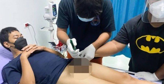 O homem na faixa dos 20 anos acabou com o pênis entalado em um cano de PVC em sua casa, em Bangcoc (Tailândia). O rapaz ficou em apuros ao testar o resultado de um procedimento para aumentar o órgão sexual, de acordo com o “Metro”. O incidente ocorreu na última quarta-feira (13/10).