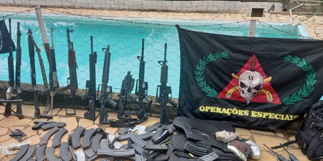 Durante as duas abordagens, foram recuperados, explosivos , armas longas ponto 50 e 10 fuzis, além de outras armas, munições, granadas, coletes, miguelitos e 10 veículos roubados.