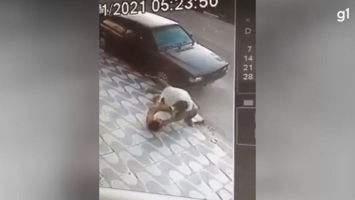 Durante luta corporal, o assaltante joga Marcia na calçada, conforme mostram as imagens de monitoramento. O criminoso desfere diversos golpes na vítima, que está caída no chão. “Ele estava indo em direção ao meu carro quando reparou eu levantando. Voltou e acertou mais um soco e fugiu levando o celular e o carro”, relembra.