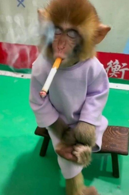 Mas a filmagem, compartilhada no TikTok, gerou fúria entre os defensores dos animais e agora foi excluída da rede social. O macaco, que se acredita ter o nome de Banjin, é visto sentado de pernas cruzadas em um pequeno banquinho de madeira vestindo um macacão roxo, baixando a cabeça e piscando para tentar evitar que a fumaça entre nos seus olhos.