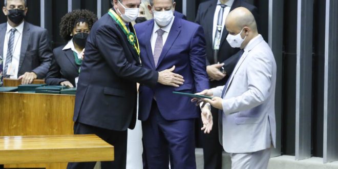 Enquanto Bolsonaro recebia a honraria, deputados da oposição gritaram “genocida”. Já os congressistas aliados, o chamaram de “mito”. As manifestações foram breves.