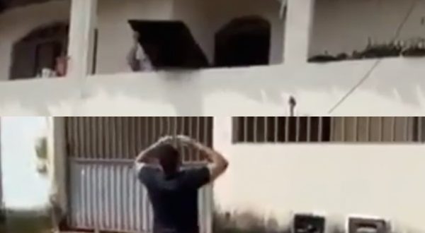 Priscila primeiro começa jogando as roupas do marido, depois o ventilador e por fim a smart TV de 32 polegadas, que ele ainda estava pagando.
