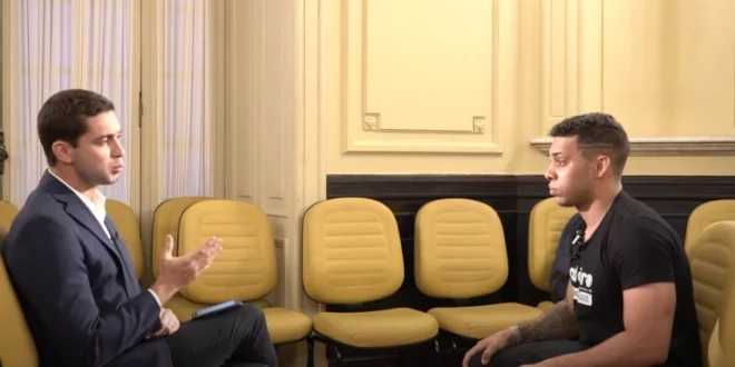 Vereador Gabriel Monteiro durante entrevista ao jornalista Pedro Figueiredo Foto: Reprodução/Print de vídeo publicado nas redes sociais