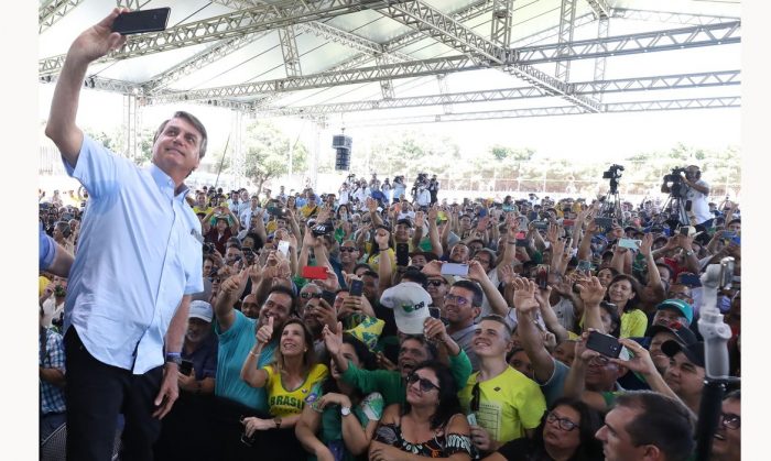 O presidente da República, Jair Bolsonaro, participou hoje (14) de uma cerimônia para a entrega de títulos regularização fundiária a assentados no município de João Pinheiro (MG).
