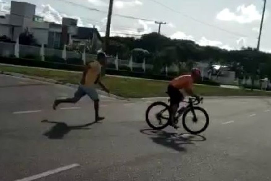 Um ciclista foi perseguido e empurrado por um homem em frente a um condomínio no bairro do Cabo Branco, em João Pessoa, na manhã deste sábado (14).