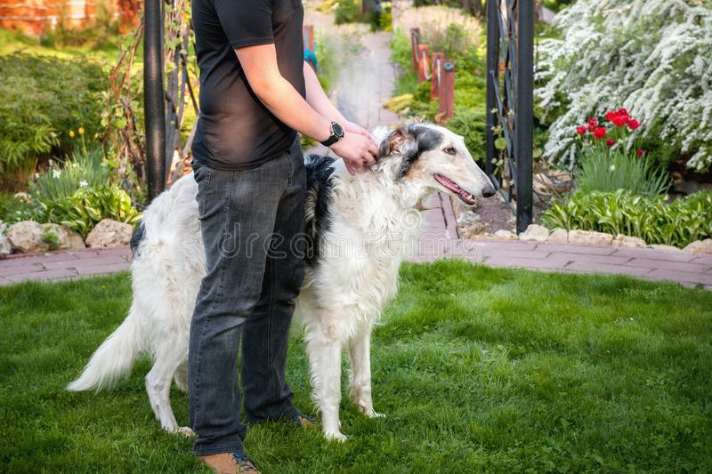 O animal desenvolveu, 12 dias depois do início dos síntomas dos donos, lesões cutâneas características da doença, como pústulas na barriga e uma ulceração anal. A transmissão foi confirmada por meio da comparação do material genético do vírus encontrado nas amostras dos homens e do cachorro. O ortopoxvírus símio, que causa a doença, é transmitido por contato próximo com fluidos corporais e com feridas na pele.