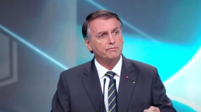 Durante o debate, Bolsonaro diz que o auxílio Brasil chega a 21 milhões de famílias, em resposta ao Padre Kelmon.