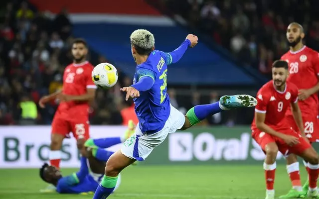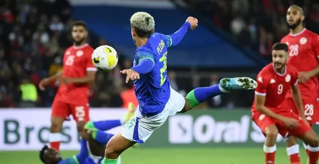 Aos 17 minutos, os tunisianos empataram com gol de cabeça do zagueiro Talbi. Mal deu tempo de os adversários comemorarem. No minuto seguinte, Raphinha dominou pela direita e lançou para Richarlison dominar a bola com o peito e chutar com categoria, sem chances para o goleiro Dahmen.