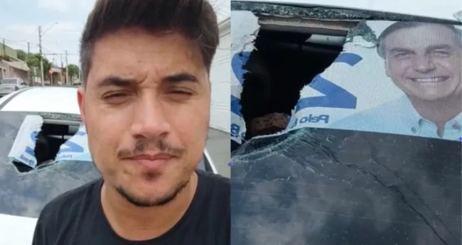 Morador de Araraquara, Jonathan Nunes gravou um vídeo após encontrar o vidro traseiro de seu carro destruído por uma pedra atirada por um esquerdopata.